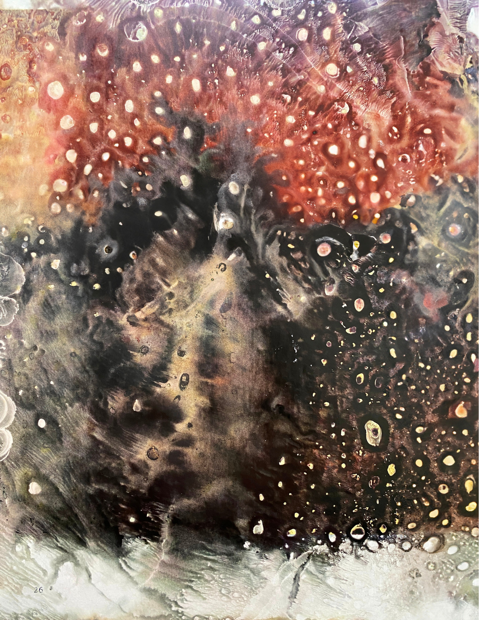 Digital Red hue collage papers. Handmade with Citrasolv to dissolve ink on National Geographic pages.